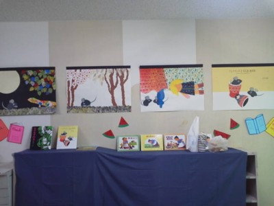 昔話ばかり、飽きちゃうかな~?と思ったけど、静かな中にもクスッとした笑い声も聞こえてきたりして、ホッとしました。 そのあとは千本くじ、でもくじを引く順番を先に決めましょう!ということで、あみだくじをしました。 数人の子があみだくじを知らなくて戸惑っていましたけど、だんだん慣れてみんなと大合唱~♪ あみだくじ~♪ あみだくじ~♪ 引いて楽しいあみだくじ~♪ 子供たちから合いの手が入って、私たちもびっくり! この歌って、かなり古いよね?? よく知ってたよね~(^^;) くじを引く時がまた大興奮! 欲しい物が取れなくてがっかりしたり、いい物が取れてみんなの羨望の眼差しを受けたり… でも2回チャンスがあったので、みんな満足してくれたかな ♪ 大人でも楽しい千本くじ、んん~、私達もやりたかったなぁ~。 ちょっと早い、おはなしのたまてばこからのクリスマスプレゼントでした❤ PR すでに1ヶ月以上もたってしまいましたが、9月22日に行われたきらりフェスタの模様です。 正面玄関には来場者の皆さん、スタッフのみなさんの写真で作った写真アートが飾られていました。 沢山の人出でもうすぐ完成~ってところです! おはなしのたまてばこでは人形劇『ばばばあちゃんのすいかのたね』で参加しました。 今回の前フリは、ばばばあちゃんとお客様との種当てクイズ。 桃、栗、柿、ここまで順調に当てていただければ、もう次のスイカは楽勝~♪ってとこですね! 子供たちの元気な答えがいっぱい届いていましたよ(^^) こちらは公演後の人形解放の様子です↓ みんな舞台で自分のストーリーでばばばあちゃんを演じています。 来年もこんな子供たちの笑顔が見られると嬉しいです~ 今回は私たちが作った大型紙芝居も展示しました。 人気の『ねぎぼうずのあさたろう』と『アレクサンダとぜんまいねずみ』です。 おもに学区内で使っていたものですが、何度か貸出もしましたので、ご覧になった方もいらしたかもしれませんね。 今年も小学校の図書祭りに向けて、がんばって手作りしています。 今年は切り絵で作っています。 みなさん、どうぞお楽しみに~♪