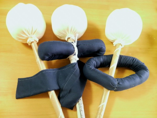 間にはチャレンジキッズで子供たちの人形劇もやりました。 チャレンジキッズの様子は後ほどUPする予定です。 今回の『すてきな3にんぐみ』は小さな子が多かったせいか、オープニング早々BGMの雰囲気と、どろぼう達の風貌に驚いたのか泣きだしてしまう子がいて・・・舞台裏としてもビビリ気味 ![]() 後半でBGMが明るくなると大分和んできましたが・・・。 今日の子供たちにとって『すてきな3にんぐみ』は怖~い本として焼きついてしまったかな?? でもこのインパクトの強さ!怖いもの見たさ!で、もうちょっと大きくなったらきっと楽しく思い出してくれるに違いありません。 たぶん・・・(^^;) 公演が終わった後、人形はどうやって作っているの?と、見に来てくださった方達からご質問があり、拙い説明をさせていただきましたが、うまく説明できたかどうか・・・補足の意味もかねて少しですが、制作途中の画像をUPてみました。 一から作るものばかりで、いつも試行錯誤でやっています。 新聞紙を丸めて芯を作り、頭、片、腕を付けています。 左腕だけなのは、右手を操者の手にするためです。 詰め物を綿、芯を新聞紙にしたためか、ちょっと重たくなってしまいました ![]() 中腰で演技することが多いので、これは反省しなくては!! 帽子の形には悩みました。 なにしろ、帽子なんて初めて作ったものですから (^^;) 絵本と同じ形にするために、型紙を何度も作り直してしまいました。 帽子の中には新聞紙が丸めて入っています。 つばに張りを持たせるため芯も貼っています。 たらこ~♪ たらこ~♪♪ いっぱい赤い帽子を作りました。 どろぼう達の帽子にくらべたら、かなり手を抜いてしまいました。 でもなんとか、らしく見えます ![]() 21体、みんなで手分けして作りました。 最後にキリンさんが表情を付けてくれてビックリ! 遠目でよく見えないのに、やっぱりのっぺらぼうより表情が付いてた方がぜったい雰囲気いいです!! フィナーレのダンスがより楽しいダンスになりました チャレンジキッズを含めて1日3回の公演は疲れました。 でも、みんなで一つの劇を作り上げたという満足感と、子供たちの笑顔を見ることが出来てとても幸せです。 次回の演目も、もう決まっています。 6回を一区切りとしているので、これが最後の演目です。 また、また、難問にチャレンジ!! 一からやり直し! はたしてどうなることやら・・・。 今から、頭がいたいです ![]() 今日のメンバーは もいもい sumi koba naka きりん tama の6人でした。 みなさん、お疲れ様でした~ ![]() |