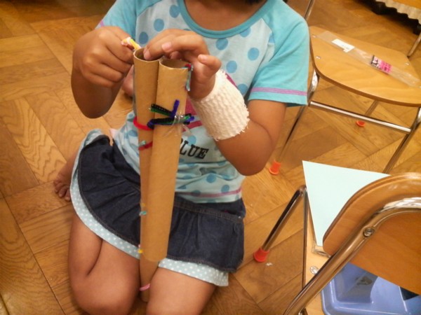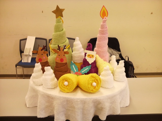 ストーリー作りの難関もなんとか突破(^^;)、脚本も作成。 人形以外の小道具も完成に近づきつつあります。 舞台での練習も始まり、最初はなかなか声が出なかったり、ふざけたりしてましたが、本番まじかということで、だんだん皆真剣味がまし、声も出るようになってきました。 劇中で歌も歌います。 子供たちが選んだ歌です。 歌の練習もしっかりしとかなくっちゃ!! リハーサルの様子をビデオに撮って、みんなで見ました。 自分の動きが客席からどう見えるか・・・。 みんな自分の演技に大笑い 反省点はいっぱいあったようです。さあ、バレンタインデーはもうすぐです。 本番は14日、みんな頑張っていこうね~~~ ![]() ![]() なごみさん主催、黒須和清さんの「人形劇ワークショップ」に行ってきました。 黒須さんの予備知識もなく参加してみたんですが、人形劇をやっていながら、黒須さんの存在は知らなかったですねぇ・・・。 結構本も出してる有名な人だったんだ(^^;)・・・勉強不足 ![]() 身近な道具で簡単にお芝居してしまうという、とっても参考になる講演でした。 実際にタオルや簡単な工作をして、歌を歌いながら(かなり適当な歌)楽しく演じでしまうやり方は、すごくお手軽でそれでいて子供たちにはかなりうけそう! おはなしパペットの人形劇の前振りなんかで使えそうです。 写真はタオルで作ったアイスクリームたちが次々とクリスマスのキャラクターに変身するとっても楽しいパペットです。 クリスマスにこれをやったら子供たち喜ぶだろうなぁ!! 私もやってみたいけど・・・その前にお歌のおけいこしなくっちゃね「(^^;) 黒須和清の2.5次元ペーパークラフトWEB SITE