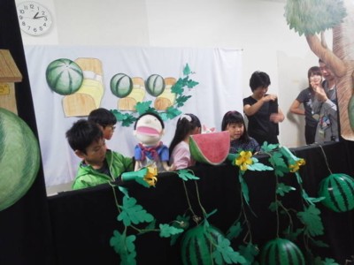 演目は「ばばばあちゃんのスイカのたね」です。 よかったら見に来てくださいね~♪ 今年はお笑い芸人ジョイマンが参加してくれてますよ!