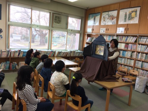昔話ばかり、飽きちゃうかな~?と思ったけど、静かな中にもクスッとした笑い声も聞こえてきたりして、ホッとしました。 そのあとは千本くじ、でもくじを引く順番を先に決めましょう!ということで、あみだくじをしました。 数人の子があみだくじを知らなくて戸惑っていましたけど、だんだん慣れてみんなと大合唱~♪ あみだくじ~♪ あみだくじ~♪ 引いて楽しいあみだくじ~♪ 子供たちから合いの手が入って、私たちもびっくり! この歌って、かなり古いよね?? よく知ってたよね~(^^;) くじを引く時がまた大興奮! 欲しい物が取れなくてがっかりしたり、いい物が取れてみんなの羨望の眼差しを受けたり… でも2回チャンスがあったので、みんな満足してくれたかな ♪ 大人でも楽しい千本くじ、んん~、私達もやりたかったなぁ~。 ちょっと早い、おはなしのたまてばこからのクリスマスプレゼントでした❤ PR すでに1ヶ月以上もたってしまいましたが、9月22日に行われたきらりフェスタの模様です。 正面玄関には来場者の皆さん、スタッフのみなさんの写真で作った写真アートが飾られていました。 沢山の人出でもうすぐ完成~ってところです! おはなしのたまてばこでは人形劇『ばばばあちゃんのすいかのたね』で参加しました。 今回の前フリは、ばばばあちゃんとお客様との種当てクイズ。 桃、栗、柿、ここまで順調に当てていただければ、もう次のスイカは楽勝~♪ってとこですね! 子供たちの元気な答えがいっぱい届いていましたよ(^^) こちらは公演後の人形解放の様子です↓ みんな舞台で自分のストーリーでばばばあちゃんを演じています。 来年もこんな子供たちの笑顔が見られると嬉しいです~ 今回は私たちが作った大型紙芝居も展示しました。 人気の『ねぎぼうずのあさたろう』と『アレクサンダとぜんまいねずみ』です。 おもに学区内で使っていたものですが、何度か貸出もしましたので、ご覧になった方もいらしたかもしれませんね。 今年も小学校の図書祭りに向けて、がんばって手作りしています。 今年は切り絵で作っています。 みなさん、どうぞお楽しみに~♪