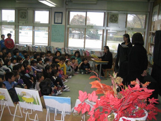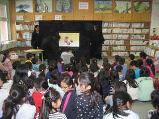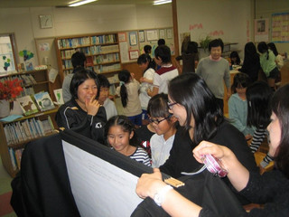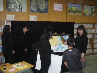 おはなしのたまてばこでは『アレクサンダとぜんまいねずみ』レオ・レオニ作 を大型紙芝居にして、子供達に観ていただきました。 大型紙芝居はなるべく絵本の雰囲気を壊さぬよう、メンバーみんなで頑張って手作りしました。 年に1度、毎年子供達はこの図書祭りを楽しみにしてくれています。 教科書にも載ったこのおはなしですが、あらためて大画面で目にするのは新鮮だったことでしょう。 読み進むうちにみんなアレクサンダの気持ちになって、お話の中に入り込んでくれていました。 終わったあと、みんなに紙芝居に触って、触って~って(^^;) ここは切り絵で、ここはコラージュで、ここはマーブリング・・・。 子供達から綺麗!すごいね~!って褒めてもらえると、私たちとっても嬉しい~♪ どうやったの~?の質問にも苦労話に花が咲きます。 みんなの笑顔がいただけて、私達も幸せです❤ メンバーのみなさん、お疲れ様でした~。 まだ年末に向けてイベントがありますが、もう一息、頑張りましょう♪ 子供達の笑顔にまた会えますように!!