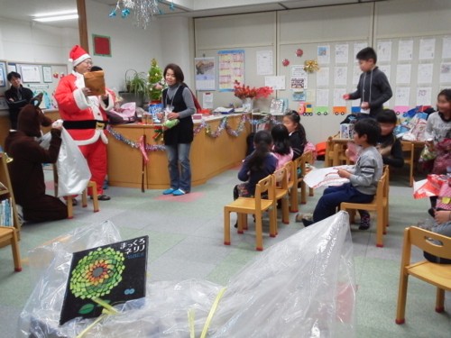 今年もよろしくお願いいたします。 (^^:)もう鏡開きも終わって、今さら、去年のネタもないですが・・・。 こちら、まっくろネリノの兄弟達 ♪ こうやって並んでる姿はかわいいよね~~❤ 実は去年の放課後教室のクリスマスイベントで「まっくろネリノ」を公演してきました。 初演のときと違って演者の人数が多くなっているので、前よりネリノ達の細かい演技が可能になり、観客のネリノへの感情移入も深くなっているのでは??と思っています。 私は初めてのナレーションで緊張~! 舞台の様子を見ながら、人形達に合わせながらのナレーションは結構気を使いました。 いつもナレーションを担当してくださっているコバさん!! 感謝、感謝です。 人形劇の他にボランティアの方達のクイズや、トランペットの演奏、そしてサンタさんからのプレゼント! みんなとっても楽しんでくれた様子。 クリスマスらしい、とっても賑やかであたたかなイベントでした。 私達たまてばこのメンバーも十分楽しませていただきましたよ~♪ ありがとうございました(^^) PR