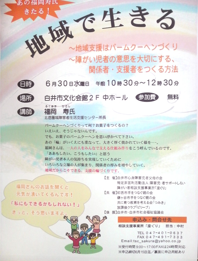 白井市の皆様へ、この場をお借りして・・・。
