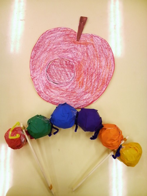 (写真はまだ、制作途中、みんな頑張って作っています。) 前回はあおむしくんを作って、『はらぺこあおむし』をやろうって雰囲気だったのに・・・、今回はなぜか意見がバラバラ ![]() みんなお気に入りのキャラがあるらしく、登場人物がずいぶん増えてしまいました。 なので、子供達だけではなく、先生やたまてばこのメンバーまでもお役をいただきました。 私達は狼とぶたということになり、子供達のようすを見ながらせっせと傍らで人形作り(^^;) で、どんなおはなしになったかって言うと・・・。 残念ながら、登場人物は決まったものの、肝心のストーリーは来月に持ち越し。 みんなの希望をかなえるのはかなり難しそうです!! 果たして、このメンバーにチームワークは生まれるのか?? 次回のチャレンジキッズはいったいどうなっちゃうのでしょう!! PR おかえし 3年生の読み聞かせにこの本を読みました。 知っている子が多かったらしく、いきなり内容が飛び交って・・・。 一番前の列に陣取っている男の子たちの間から、あ~だ、こ~だ。 ページをめくるたびに、子供達が解説してくれました ![]() 読んでいる間中、それが続いてとっても賑やかでした。 子供たちは、本の中の細かな絵の変化にすぐ気が付いて、それにまた花が咲いて、読んでいる私も含めて、何て楽しい読み聞かせだったこと! 私がお話を与えるだけではなく、受け取った子供達がお話を膨らませて楽しんでくれたのが、とっても嬉しかったです。 内容は・・・。 引越しのおかえしが限りなくつづき、果ては子供、自分までおかえしになってしまう、楽しいお話です。 おかえしのおかえしのおかえしの・・・・って繰り返しがつづき読む方はちょっと大変 ![]() いっこぐらい、おかえしの・・・を読み飛ばしちゃったかも(^^;) でも、気が付かないよね! ![]() 5月9日が公民センターでの第一回目のチャレンジキッズ。 人形劇を子供達(小学1年~4年)が一からアイデアを出し合って、来年の2月に発表をするという企画でしす。 人形劇ということで、私達おはなしパペットもお手伝いとして参加することになりました。 何をやる~?、どうやって作る~?、ってところから始まって、すべて子供たちが決めていきます。 題材が『はらぺこあおむし』になったのは、まったくの偶然。 決して、私達は誘導してませんよ~(^^;) あおむしの作り方だって、アイデアを出したのは子供達の方。 いったいどうやって作るんだろって眺めていたら・・・ 細長い袋に新聞紙をまるめて入れるんだって・・ときた! それで間を結ぶんだって! センターの方があわてて細長い袋を探しに行き、持ってきたのはビニールの傘袋。 すご~い!なるほど~!! いつの間にか、あおむしが七色あおむしに決まって、食べた穴にドアがついてしまったのも子供達の発想 ![]() みんなそれそれに個性的なあおむしと果物を作っていました。 もしかしたら今後、『はらぺこあおむし』にブタが登場する予感も(^^;) 子供達の頭ってとっても柔軟ですね。 これから毎月どんなアイデアがとびだして、いったいどうなっていくのかとっても楽しみです!! 『だるまさんの』 今日の読み聞かせは かがくいひろしさんの『だるまさんの』と『だるまさんが』 ぶっつけ本番だっだんだけど、幼児向けのとっても楽しい絵本だったので読みやすかったです。 だ・る・ま・さ・ん・の・・・と読んできて次のページをめくると、あっと驚くだるまさんが、たくさん登場。 ユニークなだるまさんに、みんなびっくり!! 短いので読み聞かせの導入にぴったり。 大きい子にもうけることまちがいなしの絵本です。 だるまさんシリーズは・・・の、・・・が、・・・と、と現在3冊出ています。 かがくいひろしさんは現役の小学校の先生です。 幼児向けの絵本には、本の角が丸くなっているなど、現場の声が反映された装丁になっています。 『もくもくやかん』 ギラギラ太陽照り付けて、大地が干上がる真夏日に、やかんたちは何やら集まって、体操を始めます。 そのうち・・・息をとめて~~~!!! いったい、やかんたちどうなっちゃうの?? やかんたちの表情が何ともおかしい!! 低学年から高学年までうけがいい、読み聞かせ一押しの絵本です。