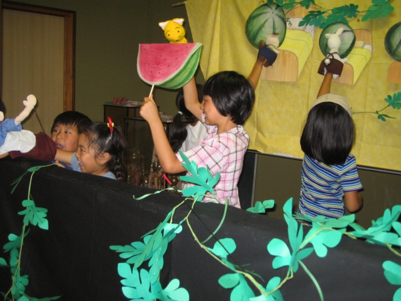 メンバー内では新人の方ばかり。ところが、情熱は古株より熱い! 長年やっていると、選ぶ本がマンネリ化してしまって、毎回同じ本を読み廻している感じ。 もちろん子供達にはダブらないように気を付けてはいますが・・・。 新人の方たちはバラエティーにとんでいて、とても素敵な絵本を選んで読んでくれています。 私など勉強になるくらい。 長く読み継がれてきた素晴らしい絵本もいいですが、その時代、その時代の子供達にマッチした絵本も楽しいな!!って思います。 最近一番時代性を感じた本は・・・。 『オオカミくんのホットケーキ 』(児童図書館・絵本の部屋) (評論者) ジャン フィアンリー (著), Jan Fearnley (原著), まつかわ まゆみ (翻訳) オオカミくんが町の人達に邪険にされながらも一生懸命ホットケーキを作って、町の人達と一緒に食べようというのですが・・・。 最後のオチに賛否両論! 子供の心にどんな影響を与えるか・・・教訓ととらえてくれればいいのですが。 単純にそう、とらえられるものでもないような気がします・・・。 『はらぺこあおむし』を・・・月に一度、西白井複合センターで活動している子育て支援サークルの「なごみ」さんに呼ばれて、8月21日(火)、人形劇をやってきました!! 『はらぺこあおむし』は、2年前に一度やっているとは言え外部でやるのは初めてなので、不安はいっぱい!とりあえずメンバー集め。 みなさん忙しい中、sumi・koba・あいうえお・もいもいの4人が集まりました。公民センターで、3度程リハーサル。けっこう忘れてるー_-;心配なのは、会場が始めての場所な事。 対象が、小学生から急に1,2歳児とちっちゃっくなってること! 前もって下見に行き、センターに必要なものをお願いしてコンセント位置も確認。 当日は、早めに!と、9時から小道具の搬入をしましたが、なんとラストで華をそえる‘ちょうちょ‘を忘れてきてしまい慌てて取りに帰ったり、‘ちょうちょ‘はその盛り上がってるところで棹からはずれて落下してしまったり・・・。 いろいろあったけど、集中して見る事をあまり期待していなかった1,2歳児がとても興味をもってみてくれて、子ども達のお母さん達のワクワクした表情が印象的でした。自分達にもこんな頃(子どもに振り回されながらもその笑顔には完敗だった頃?)があったなーと懐かしく思いました。 「なごみ」さんも、同じボランティアサークルとの事で資金面のお話など共通の悩みがあるようでした。ボランティア同士これからも交流出来るといいですね。と約束して、おはなしパッペットの外部デビューは無事(?)終了~。 |