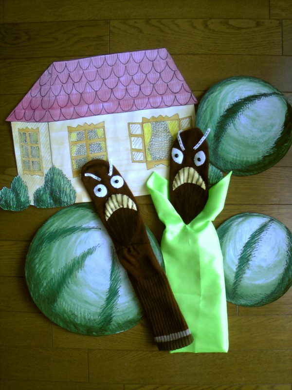 2008年、7月 中地区子供会『ばばばあちゃん・すいかのたね』 今年は無謀にも口パク人形に挑戦しました。 なにせ作ったことの無いものですから、どうやって作ったらいいか・・・。 メンバーからいくつか市販の人形を借りて見よう見まねで作ってみました。 口パク人形の作り方が紹介されているサイトも参考になりました。 なんとか、ばばばあちゃんに似てるしょうか?? 怒った時のすいかのたねは茶色い靴下で作りました。 靴下に手を入れて表情を変化させます。 動物達は軍手人形です。うさぎ、きつね、ねこ、いぬの4体。 すいかはビーチボールを利用。 すいかの伸びる茎と葉っぱをを作るのが大変でした。 もう、内職状態(^^;) 大きなすいかも本番直前まで何回も手直し。 いったいどうなることやらと、ハラハラしましたが、何とかみんなの力で今年も無事、公演できました。ほっ・・・。 最後はやっぱり子供達の笑顔!! 来年もがんばろうっていう気にさせてくれます(^^) 今年のメンバーは もいもいさん。 もいもいさんの娘さん。 KOBAさん キリンさん。 SUMIの5人でした。 みなさん、お疲れ様でした~ ![]() PR さくら祭りはもう桜が舞って散り始めています。 でもお祭りは5,6日でセ~フ!! 屋台やら、フリーマーケット、カラオケ大会、お神輿などでとっとも賑わっていました。 私も娘達とお花見に ![]() それにしても、フリマはやっぱりいい! ついつい、何か安くていいものないかなぁって品定め・・・。 けんかのきもち (からだとこころのえほん) 柴田 愛子 (著), 伊藤 秀男(絵)<ポプラ社> ありました、ありました! 読み聞かせに使えそうな絵本が。 度迫力な顔のアップがかなりのインパクト。 けんかをした時の悔し~い!!気持ちがテーマの絵本。 こういうのきっと男の子に受けると思うなぁ・・・。 この本が150円って、絶対お買い得 ![]() 本って古くても内容が価値だから、人によってはすごいお宝発見なのよね。 これだからやめられない(^^;)フリマ大好き ![]()